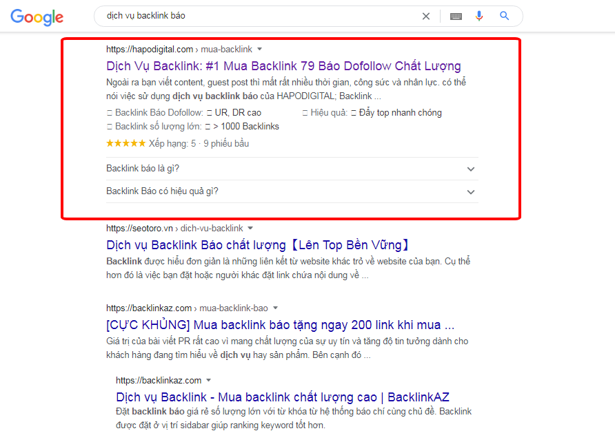 HapoDigital giúp doanh nghiệp xuất hiện tại các vị trí Top đầu (1, 2, 3,…) trong các bài viết review doanh nghiệp đã lên Top sẵn trên trang tìm kiếm của Google. Giúp doanh nghiệp tiếp cận lượng lớn khách hàng tiềm năng, đồng thời gia tăng độ uy tín cho thương hiệu của doanh nghiệp.